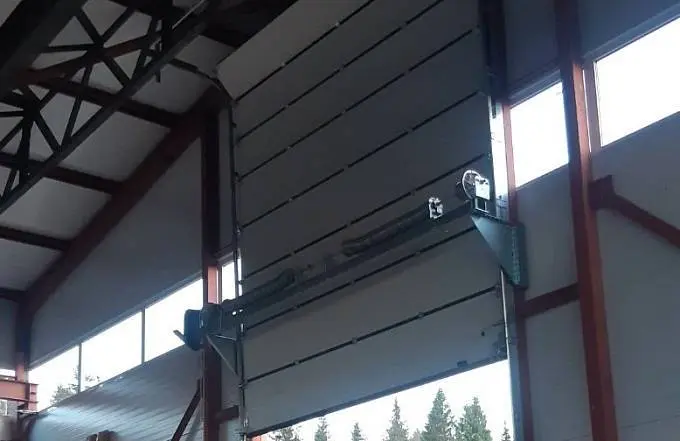 При реконструкции здания была произведена замена ворот на новые, промышленные ворота Алютех с электроприводом. В воротах предусмотрена калитка с доводчиком. Для недопущения открытия ворот с открытой дверью, установили контакт калитки с приводом.